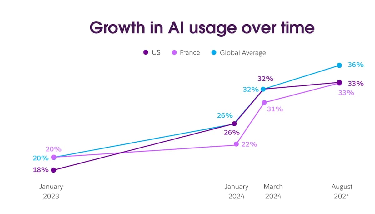 Growth in AI usage according to a recent Slack report
